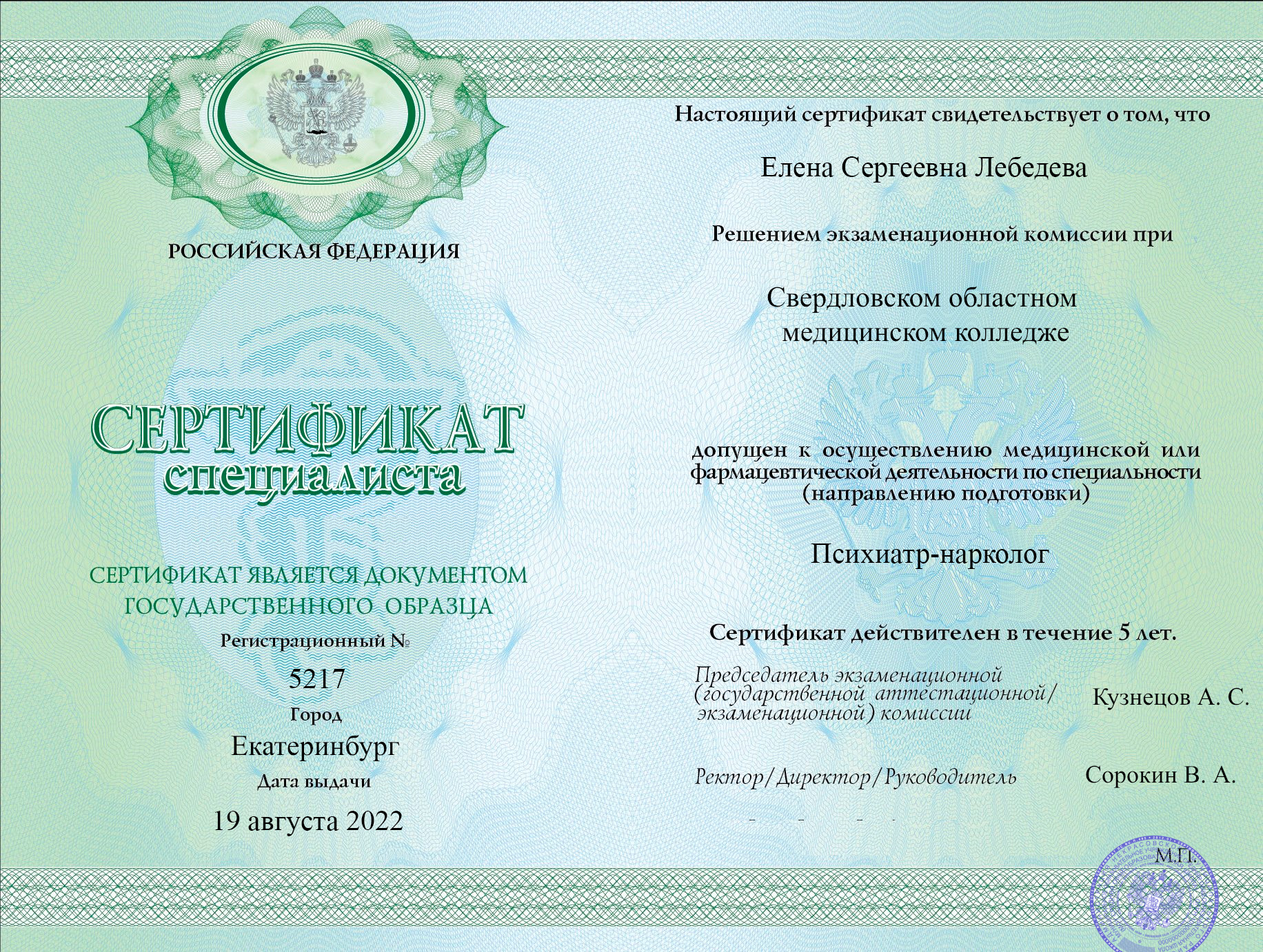 Елена Сергеевна Лебедева врач нарколог клиники доктора Стукаловой в Нововоронеже